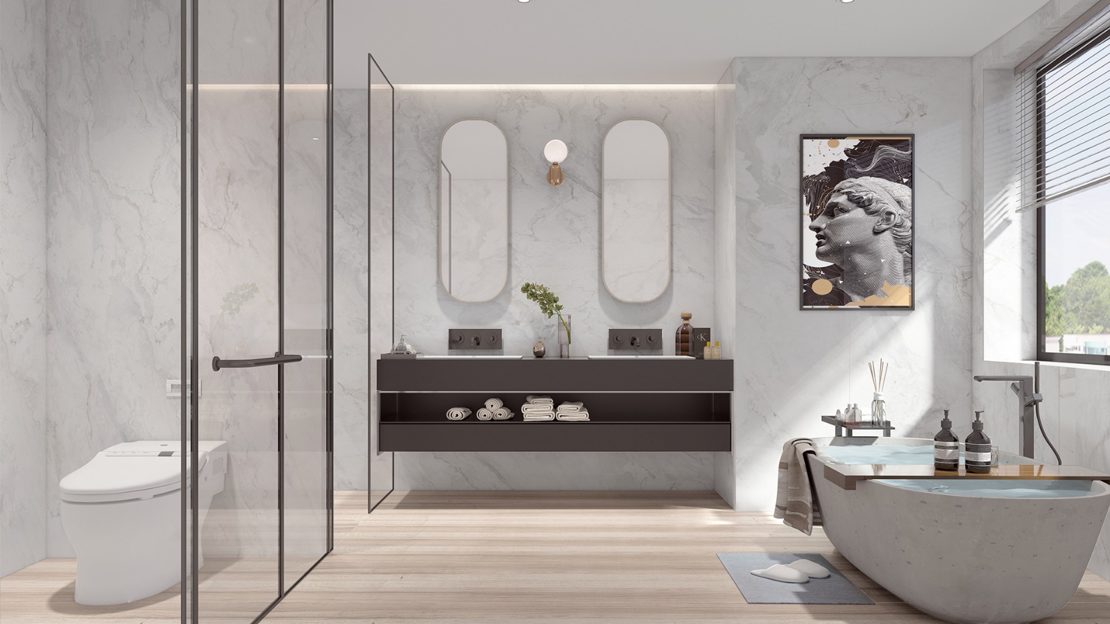 Panel de pared efecto mármol blanco, resistente al agua y al fuego. Fácil de limpiar.
